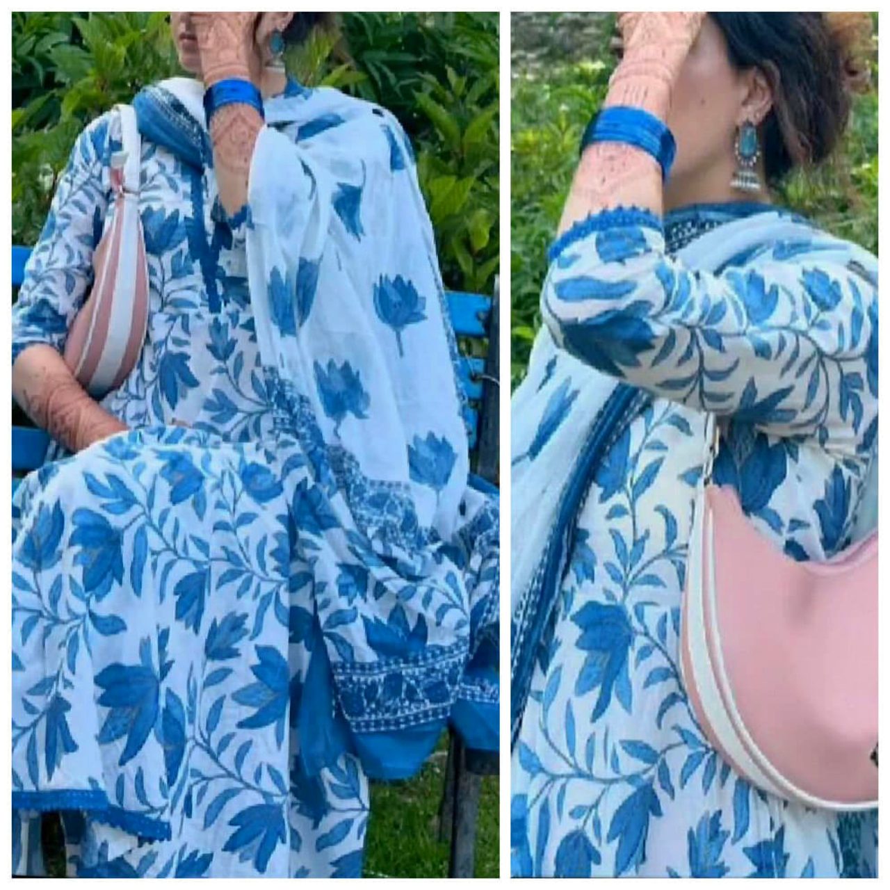- Kurta – Super Comfortable Cotton With Beautiful Floral Print And Lace (Stitched )